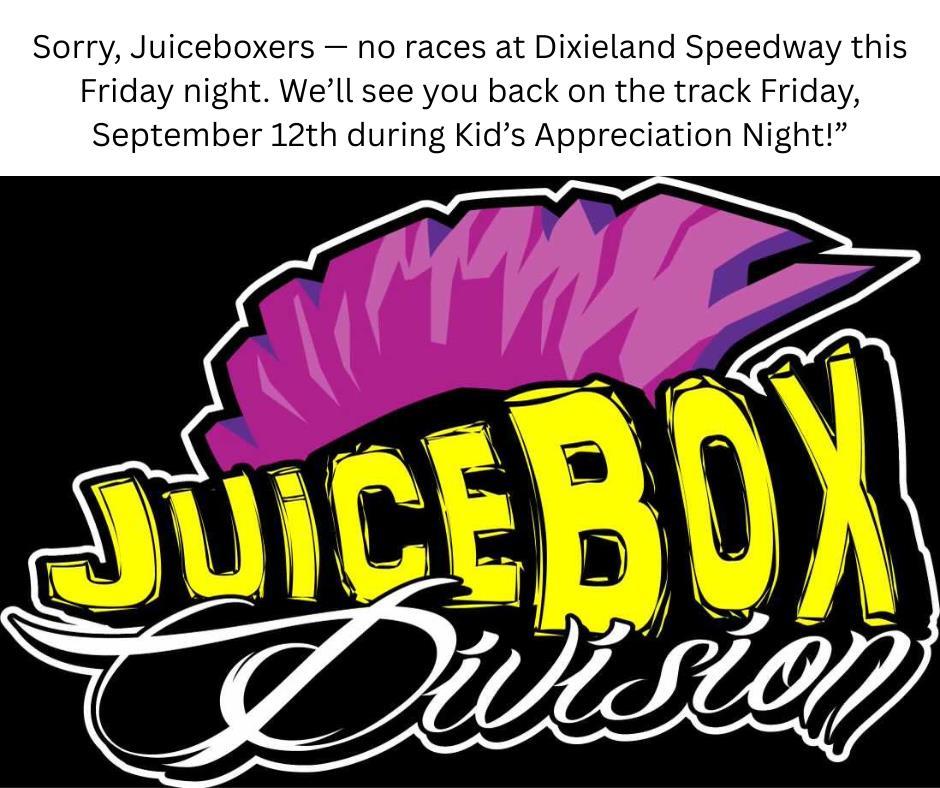 Sorry Juiceboxers-no racing at Dixieland Speedway this Friday